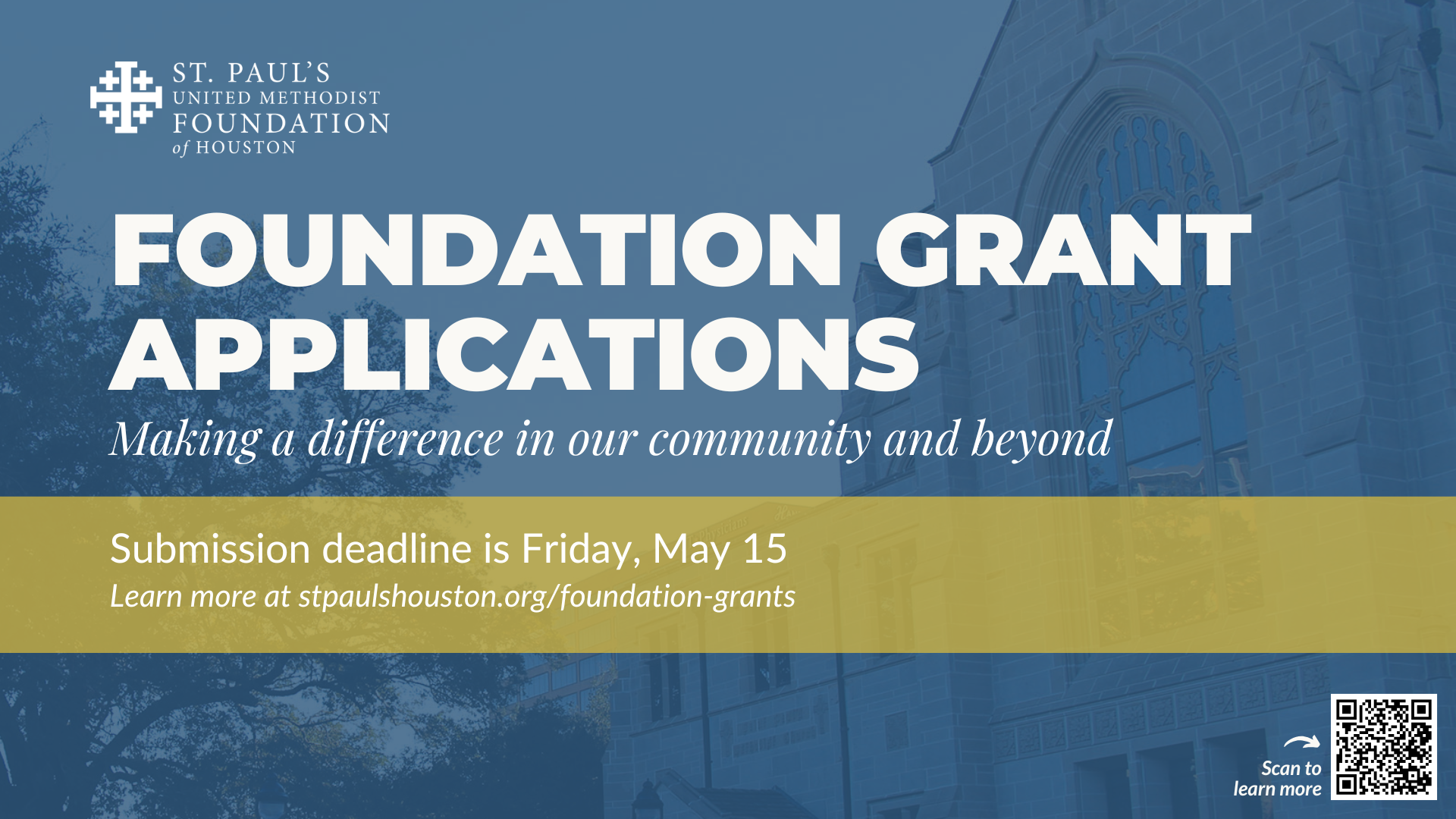 The work of the Foundation is made possible by an endowment that supports the maintenance and upkeep of St. Paul’s, scholarships, and non profit grants. Contact Johanna Wolfe at foundation@stpaulshouston.org to learn more about the foundation or the grant application process.